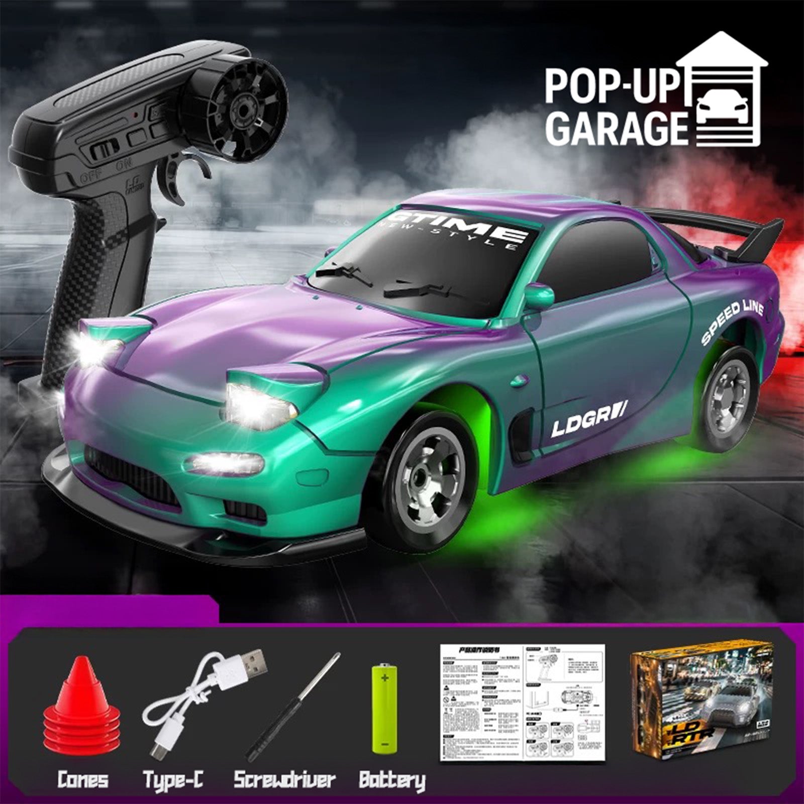 Fabriqué à l'échelle 1:64 avec une carrosserie en ABS moulée par injection , ce modèle se distingue par son réalisme et sa robustesse. Plus qu'un simple objet esthétique, il est conçu pour le drift . Grâce au système Tail Flick Drift , vous réaliserez des dérapages contrôlés sur le sol comme sur une piste de course.
