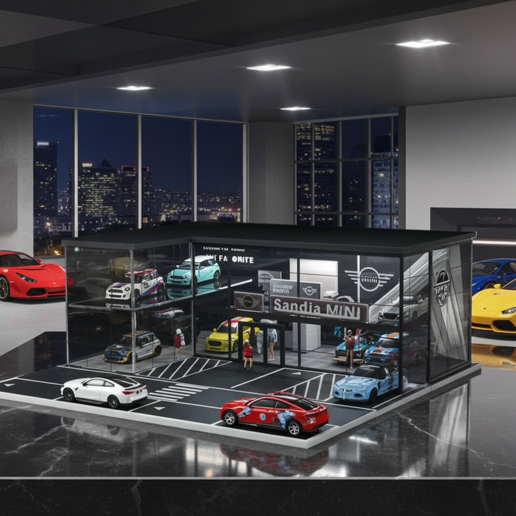 Apportez une touche d'élégance britannique à votre collection avec le showroom d'assemblage Mini Cooper à deux couches , un diorama haut de gamme à l'échelle 1:64 conçu pour les collectionneurs en quête de réalisme et de présence.