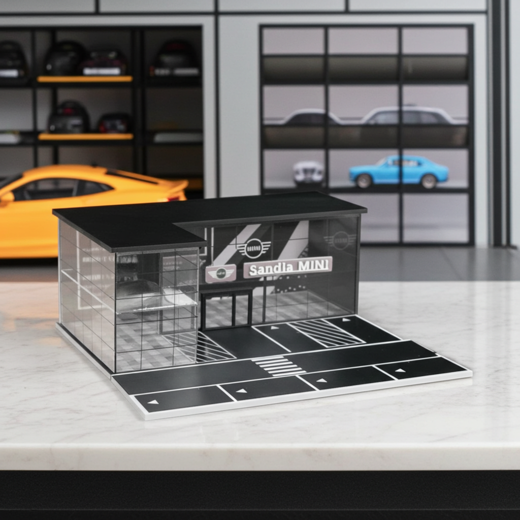 Fabriqué à partir de panneaux en PVC de haute qualité et de parois en acrylique transparent, cet ensemble d'exposition modulaire est facile à assembler et conçu pour durer. Que vous recréiez une scène de concession automobile ou le garage de rêve d'un collectionneur, il constitue la pièce maîtresse idéale pour tout passionné de modèles réduits à l'échelle 1/64.