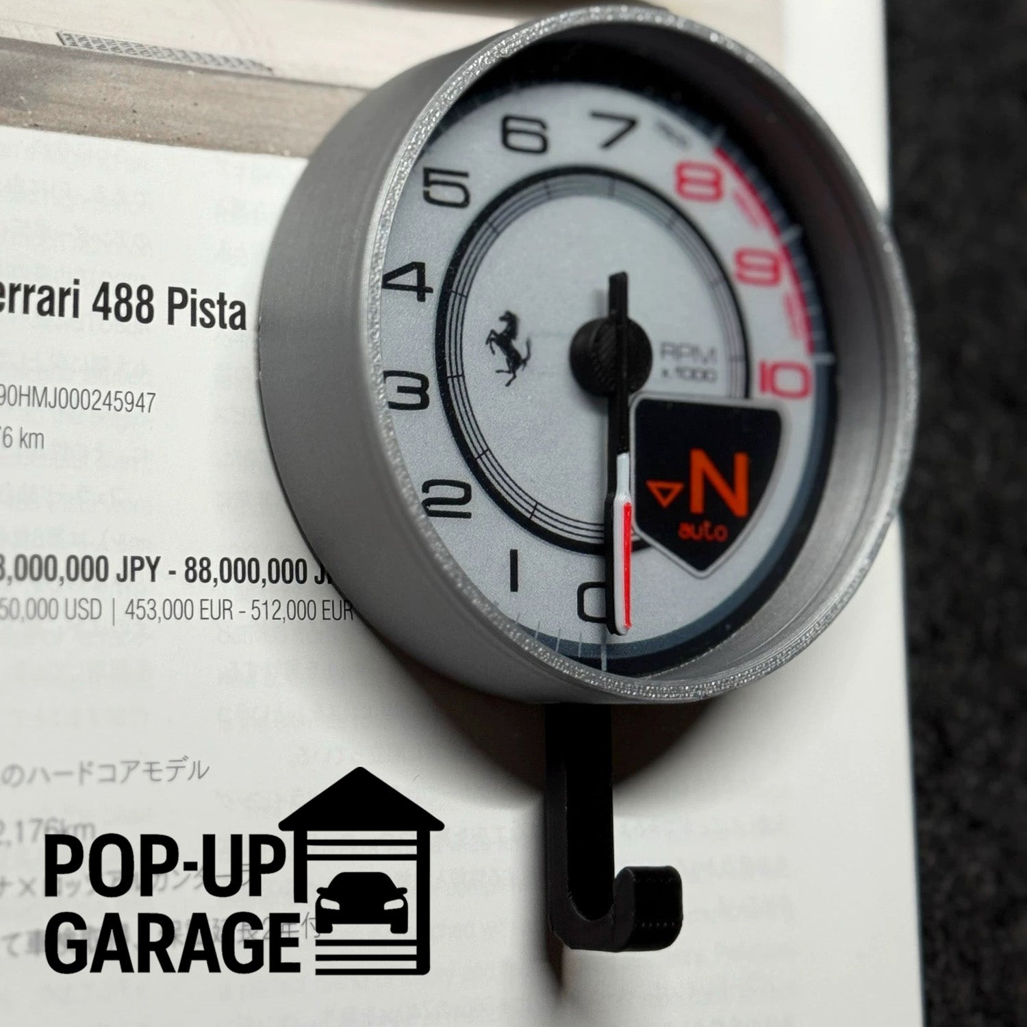 Bring the thrill of the track to your home with this meticulously crafted Ferrari 488 Pista Tachometer Key Hook.