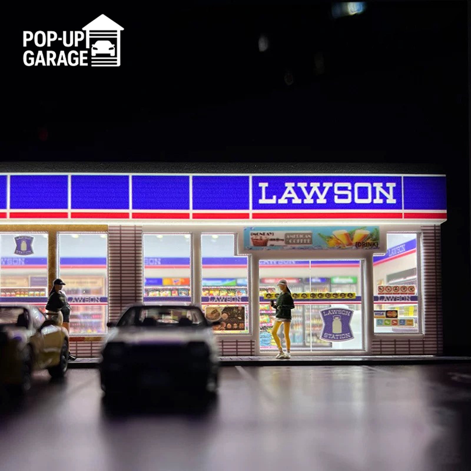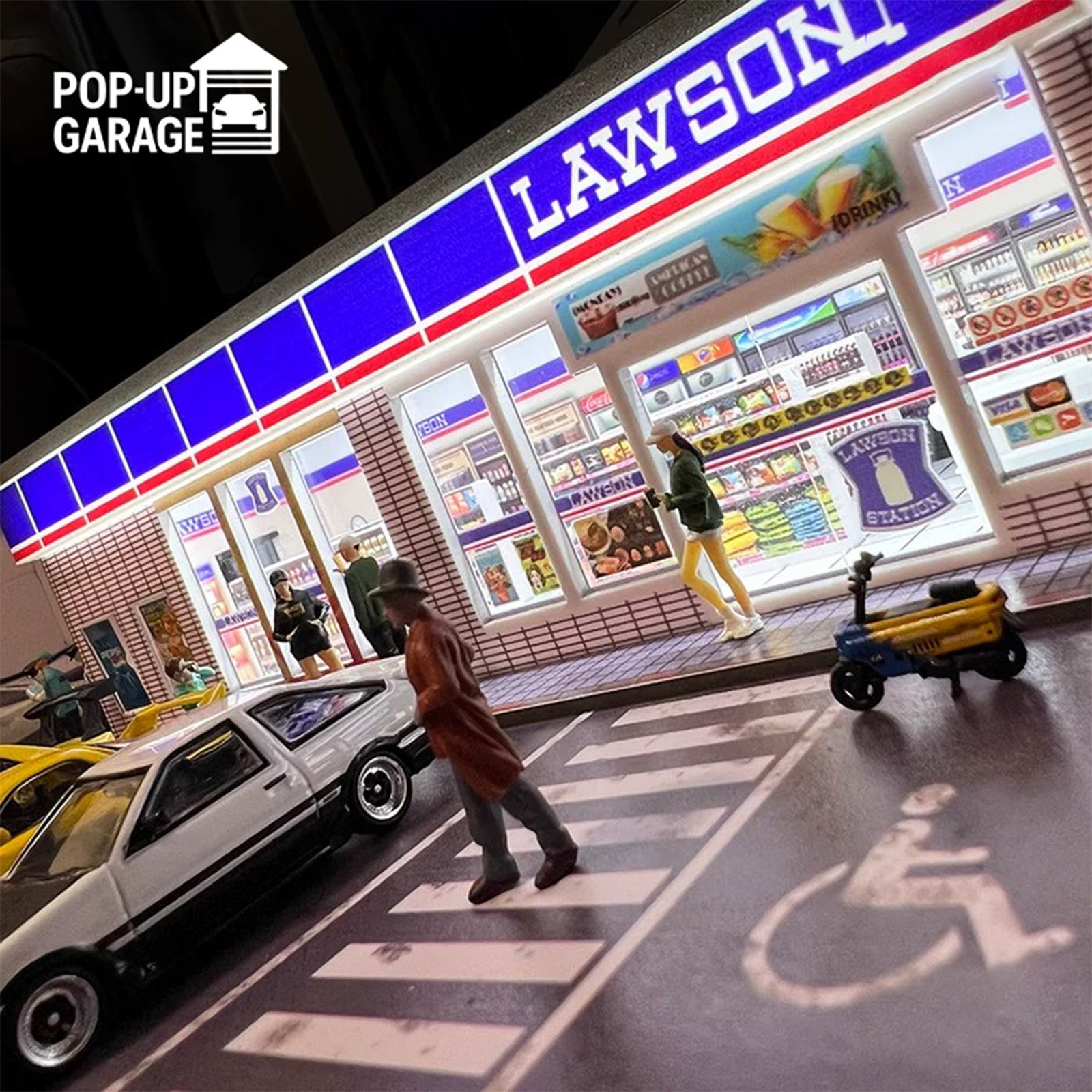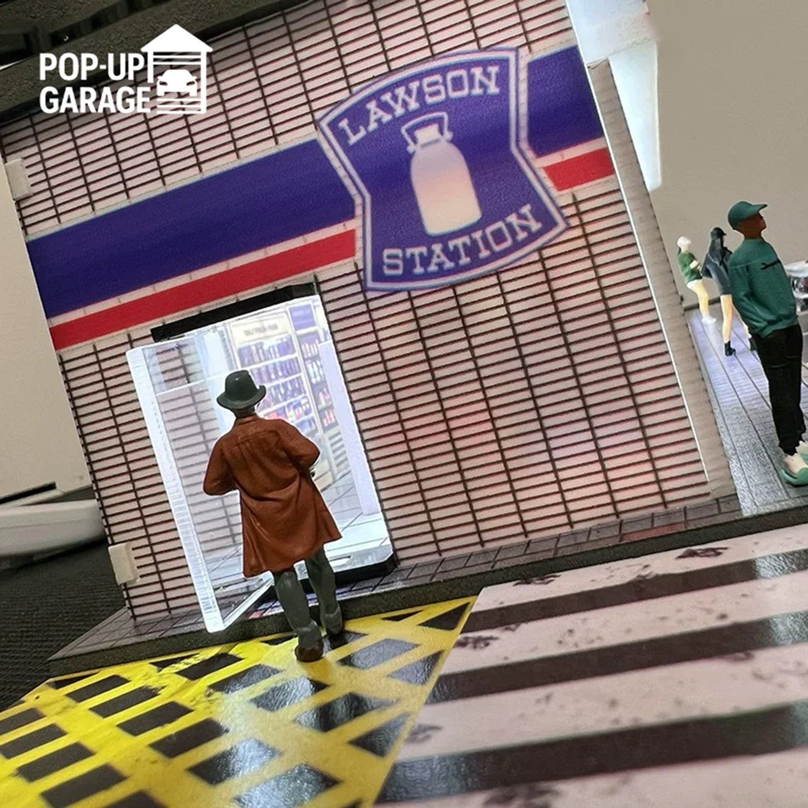 Bring the glow of late-night Japan to your collection with the Lawson Konbini Scene, a 1:64 scale diorama inspired by the iconic blue convenience stores found on every Tokyo street corner.