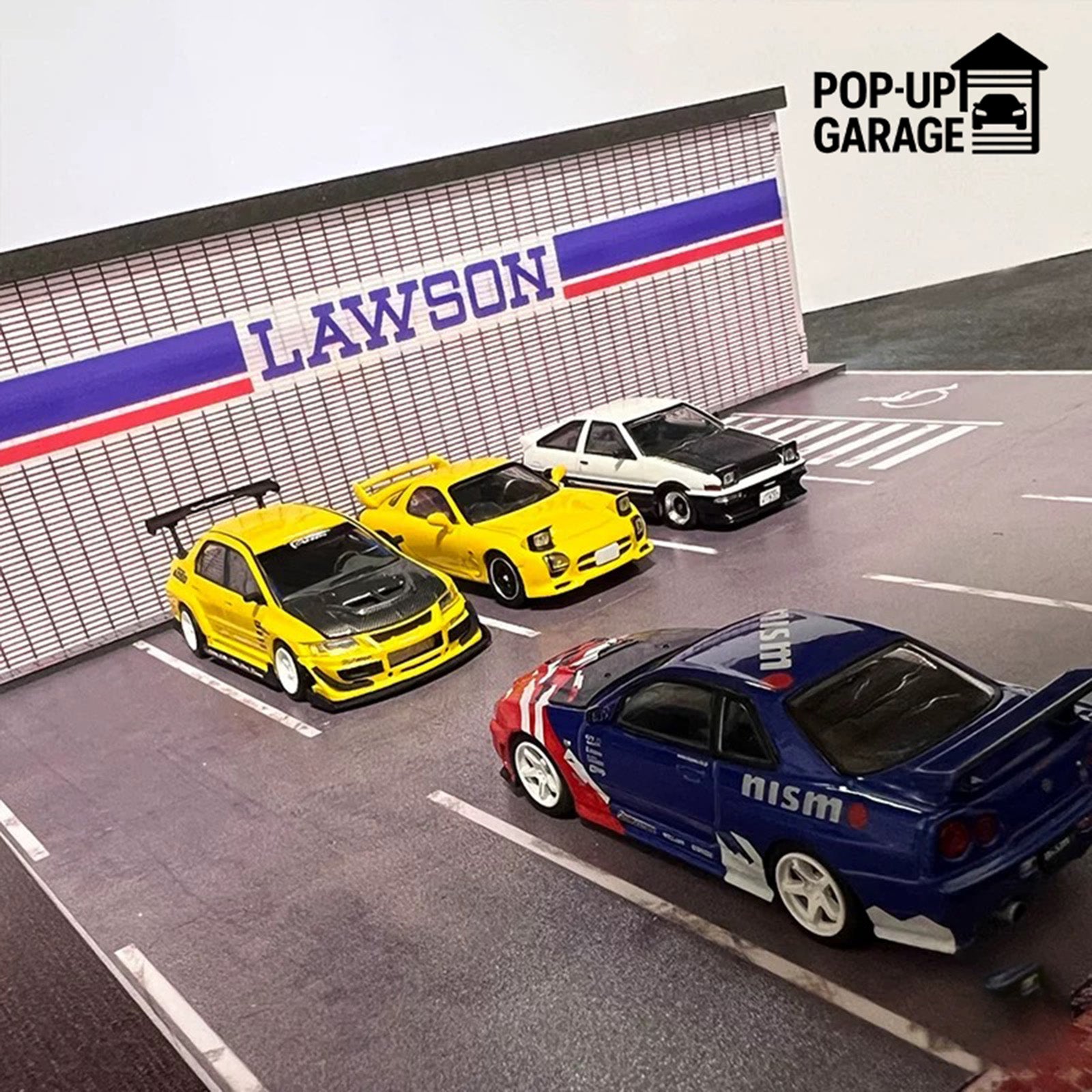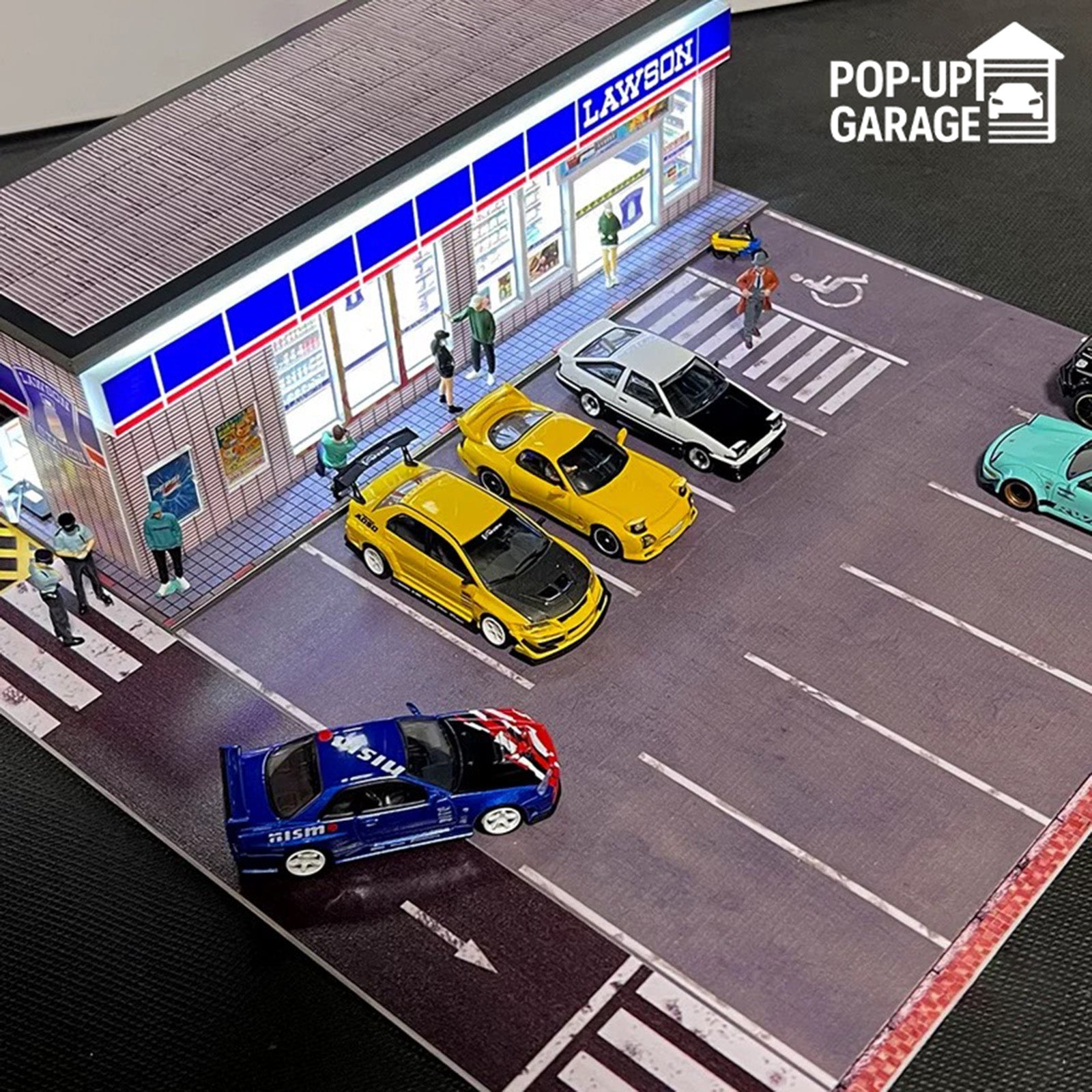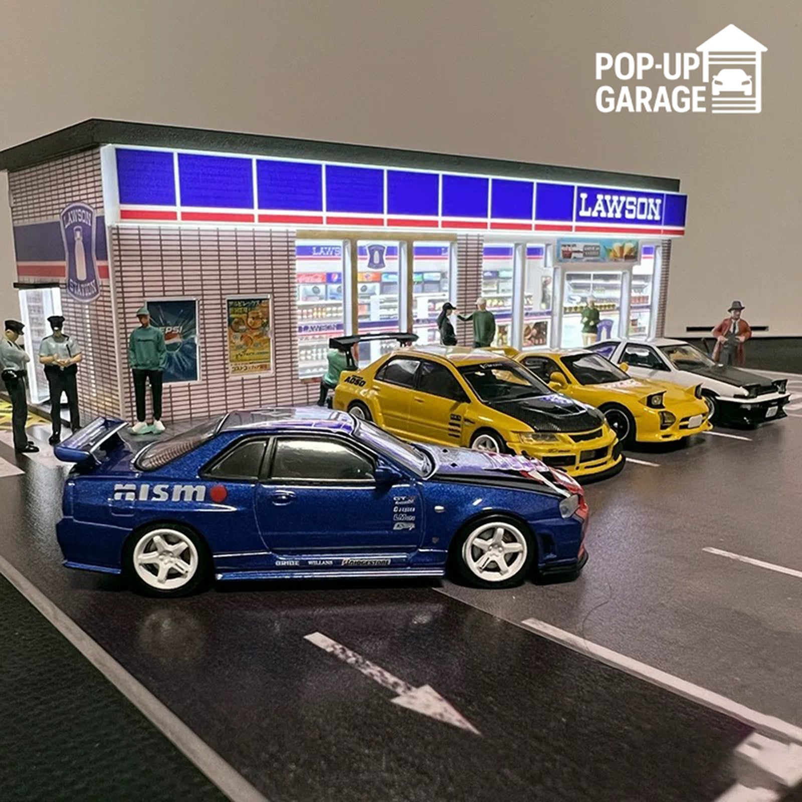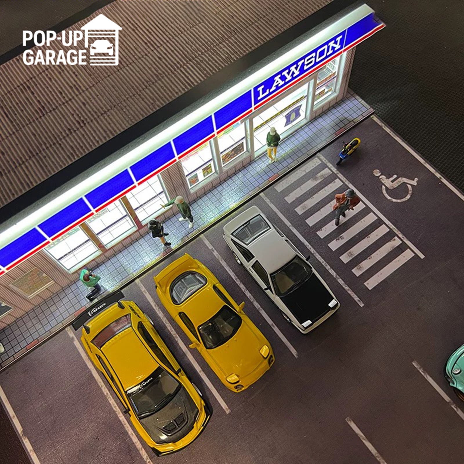 Bring the glow of late-night Japan to your collection with the Lawson Konbini Scene, a 1:64 scale diorama inspired by the iconic blue convenience stores found on every Tokyo street corner.