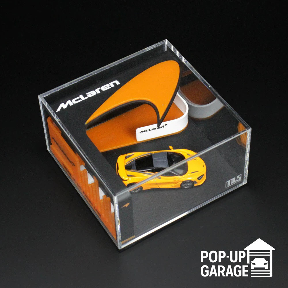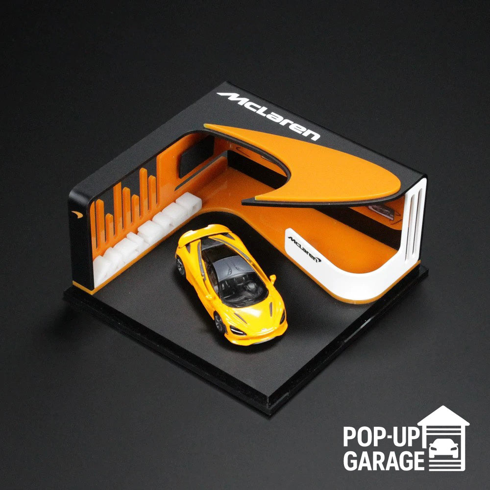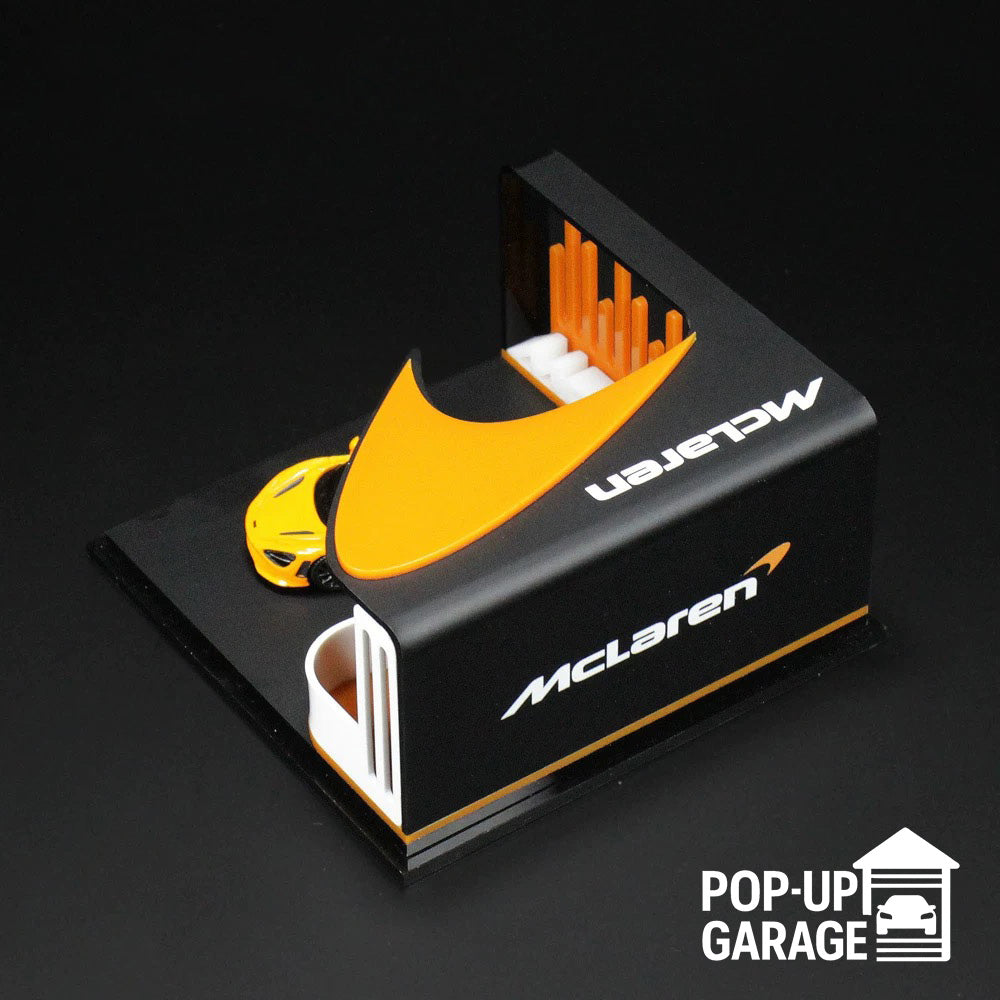 Fully 3D-printed with high-detail architecture, this mini diorama recreates the essence of McLaren’s performance studios - from the fluid orange panels to the sculpted canopy lines.