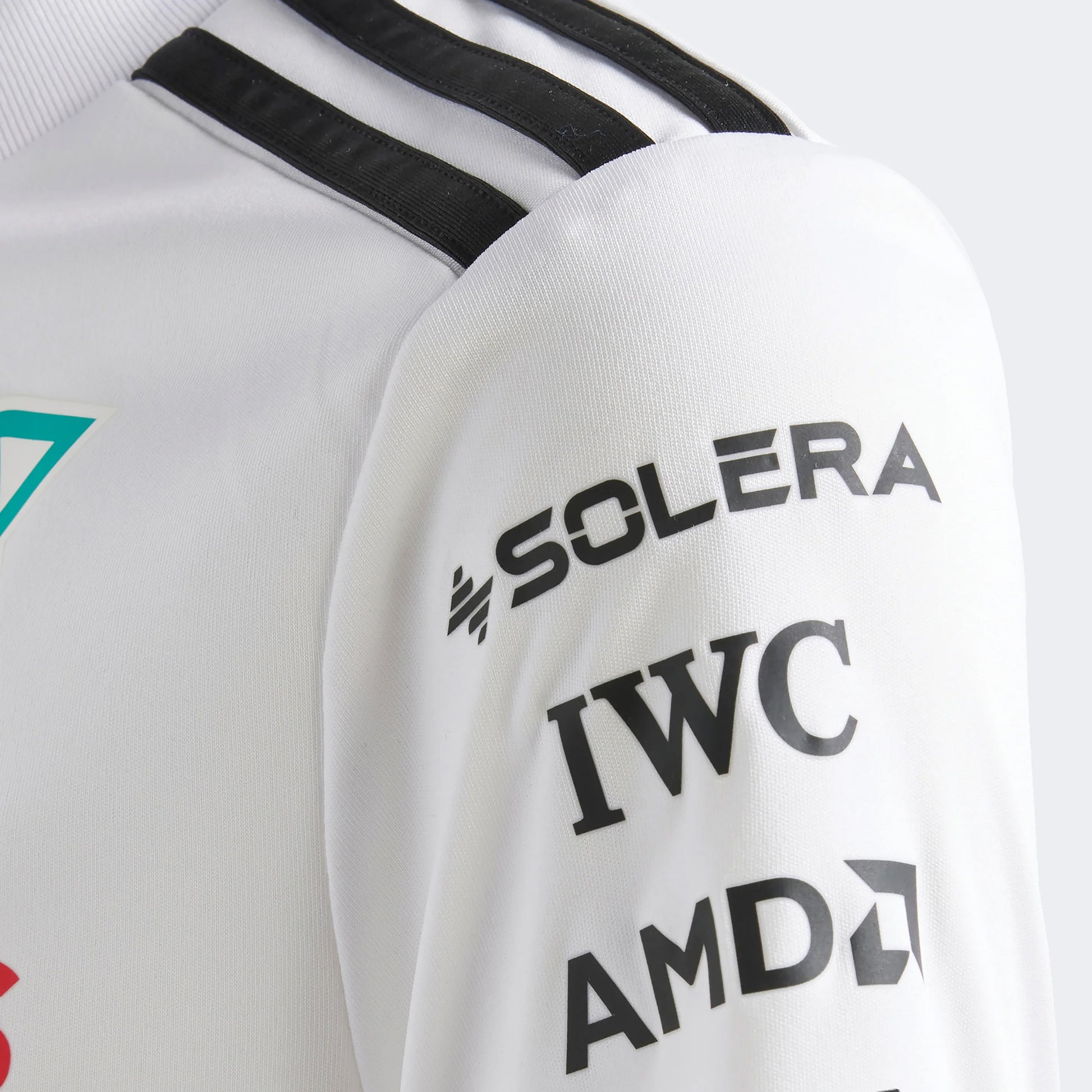 Mercedes - AMG Petronas Formula One Team logo branding and sponsor logos, along with 3-Stripes on the shoulders and the 3 Bar Logo on the chest offer a signature adidas signoff.