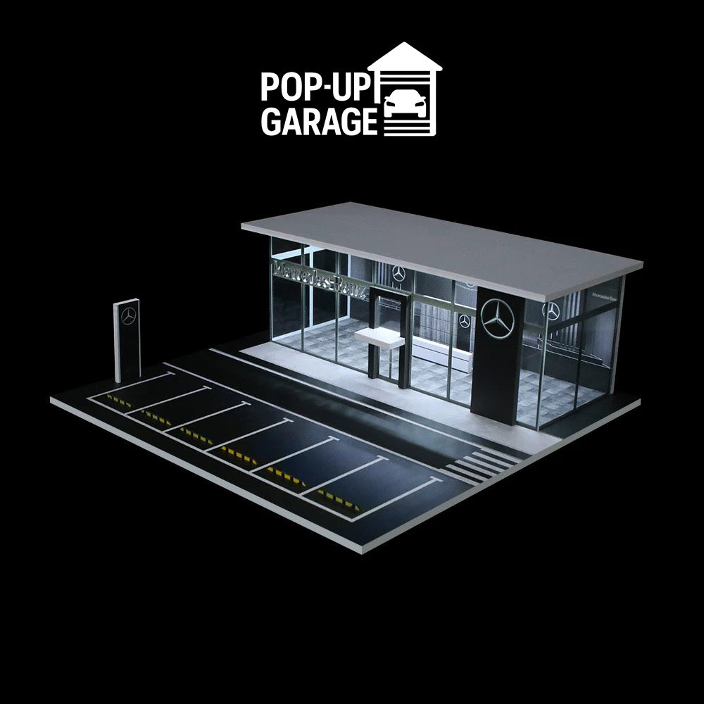 Bring the thrill of German engineering to your display with the Mercedes-Benz Showroom, a premium 1:64 scale diorama built for collectors who crave realism and presence.