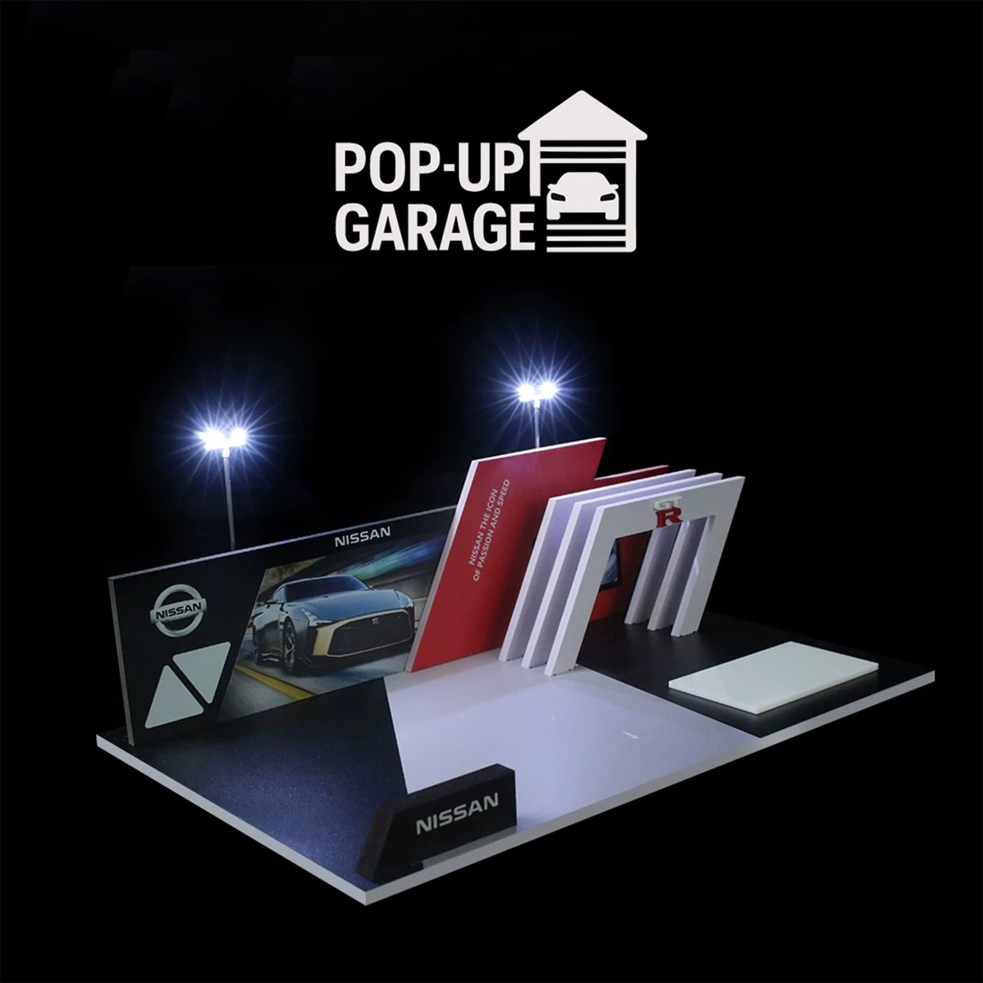 Featuring detailed wall panels, printed branding, and display-floor graphics, it provides the perfect backdrop to highlight your favourite 1:64 Nissan models.